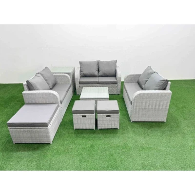 9 Seater pe Wicker Rattan Furniture Sofa Sets with Square Coffee Table 2 Love 3 Stool Side Light Grey Fimous