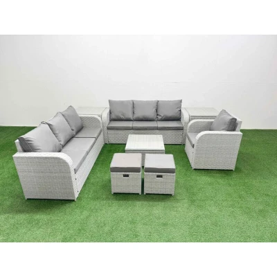 9 Seater Poly Rattan Outdoor Garden Furniture Square Coffee Table Sofa Set Patio 3 Reclining Chair Stools 2 Side