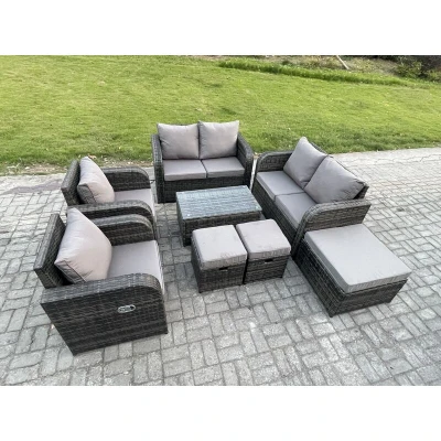 9 Seater Rattan Garden Furniture Set Patio Outdoor Lounge Sofa with Rectangular Coffee Table 3 Footstools Love Dark Grey Mixed Fimous