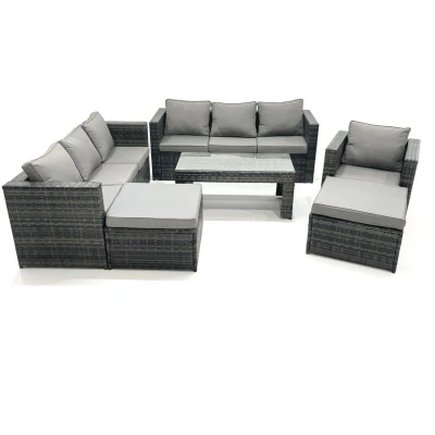 9 Seater Rattan Garden Outdoor Furniture Set with 3 Sofa Coffee Table 2 Big Footstool Fimous