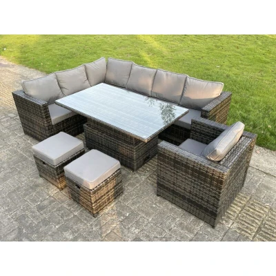 9 Seats Dark Mixed Grey Rattan Garden Furniture Corner Sofa Set Adjustable Dining Or Coffee Table Chair Left Fimous