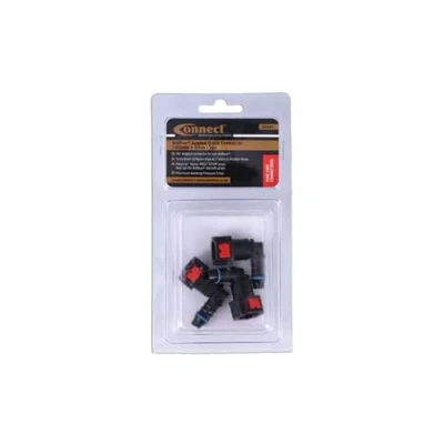 90° angled connectors for AdBlue, suits: 8mm nylon pipe; 7.5mm ID rubber hose. Constant running pressure: 7 bar (101psi); max pressure: 9 bar (130psi). Operating temperature: -40°C to 70°C. Body manufactured from nylon PA12; O-ring from EPDM seal. Made to SAE J2044-2009 standards. Red tab for AdBlue identification (note: standard fuel connectors have grey tabs). Included in assorted box of 90° angled AdBlue quick fuel line connectors, see Connect Part No. 34228.