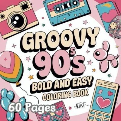 90's Coloring Book Adults Retro Nostalgia 60 Pages Stress Relief Pop Culture Funky Groovy Mental Health Anxiety Relief: 90s ... Phones, and More Iconic Stuff for Relaxation