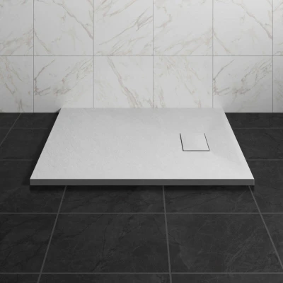 Features: Durable Construction: SMC materials are known for their strength and resilience, making the shower tray highly durable and long-lasting. Elegant Appearance: The stone pattern provides a sophisticated look, adding a touch of luxury to any bathroom setting. Non-Slip Surface: Designed for safety, the textured finish helps prevent slipping, ensuring a safer showering experience. Lightweight Design: Despite its robust make, an SMC shower tray is lightweight, making installation easier and more manageable. Easy to Clean: The smooth, non-porous surface prevents the accumulation of grime and is easy to maintain, enhancing hygiene. Eco-Friendly: SMC materials can be produced using environmentally friendly processes, making it a sustainable choice for conscious consumers. Specification: -Tray Type: Rectangle -Colour: White -Material: SMC -Non-Slip surface -Height: 32mm -Length: 900mm -Width: 800mm -Waste Hole Size: 90mm -Waste Location: Side of Tray -Drain Cover Size: 20x12cm