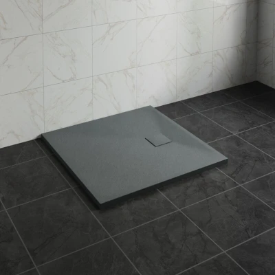 General description NRG 900 x 900mm SMC Anthracite Square Slate Effect Bathroom Shower Tray features a durable construction made from SMC materials, known for their strength and resilience. The elegant stone pattern adds a sophisticated look, enhancing the luxury of any bathroom setting. Designed with safety in mind, the non-slip surface helps prevent slipping, ensuring a safer showering experience. Despite its robust design, the shower tray is lightweight, making installation easier and more manageable. The smooth, non-porous surface is easy to clean and maintain, promoting hygiene. Additionally, SMC materials can be produced using environmentally friendly processes, making this shower tray a sustainable choice for conscious consumers. Technical specifications Tray Type: Square Colour: Anthracite Material: SMC Non-Slip surface Height: 32mm Length: 900mm Width: 900mm Waste Hole Size: 90mm Waste Location: Side of Tray Drain Cover Size: 12x12cm Installation We suggest you ask a