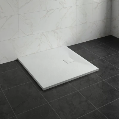 General description NRG 900 x 900mm SMC White Square Slate Effect Bathroom Shower Tray combines durability with elegance. Made from strong SMC materials, this shower tray is designed to withstand the test of time while adding a sophisticated stone pattern that enhances the luxury of any bathroom. Its non-slip surface ensures safety during use, making it a practical choice for any household. Technical specifications Tray Type: Square Colour: White Material: SMC Non-Slip surface Height: 32mm Length: 900mm Width: 900mm Waste Hole Size: 90mm Waste Location: Side of Tray Drain Cover Size: 12x12cm Installation We suggest you ask a qualified professional to install this item. Waste sold separately. Usage Easy to clean due to its smooth, non-porous surface that prevents grime accumulation. Lightweight design facilitates easier installation and handling. Eco-friendly production processes make it a sustainable choice.