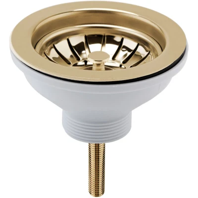 ManoManoGeneral description An essential piece for your kitchen sink, this 90mm basket strainer waste is designed for use with the elegant Fireclay kitchen sinks from Balterley. The basket design prevents large pieces of food from entering the drain and can be pushed down to fill the sink for washing up. Manufactured from high-quality stainless steel, it features a luxurious Brushed Brass finish that complements both modern and traditional kitchens. Technical specifications Dimensions: H: 63mm x W: 115mm x D: 115mm 90mm Bolt Compatibility and accessories Suitable for use with Balterley Fireclay sinks without an overflow Matching Brushed Brass taps available from Balterley Usage Removable basket to catch food waste for easy cleaning Ensures smooth water flow and prevents clogs Other information 1 year manufacturer's guarantee