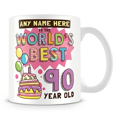 90th Birthday Gift for Women Personalised Mug/Cup Add Name Worlds Best Design Pink