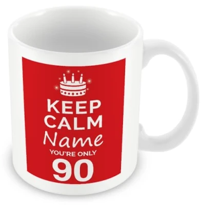 🎁 Unique Personalised Birthday Gift Mark a 90th birthday with this personalised red Keep Calm mug. Add any name and age for a fun, thoughtful gift perfect for friends, family. 🎈 Iconic Keep Calm Design Celebrate classic British humour with the iconic Keep Calm message printed on both sides. A fun reminder that age is just a number and birthdays deserve a party. ☕ Practical and Everyday Friendly Crafted from premium ceramic, this 11oz mug is microwave and dishwasher safe. A practical yet stylish gift for daily coffee, tea, or hot chocolate. 📦 Expert Printing & Secure Packaging Each mug is professionally printed for crisp detail and vibrant colour, undergoes strict quality checks, and is securely packaged to arrive safely for gifting. 🎂 Flexible Age Options for Any Birthday Choose from popular milestone ages or select “XX” from the options above to personalise this mug with any number. A wonderful way to create a unique birthday gift for friends or family., Weight: 0.7275254646 pounds, Manufacturer: ITServices