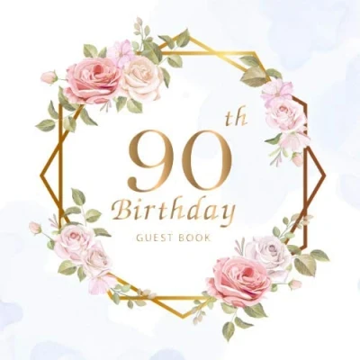 90th Birthday Guest Book: Beautiful Flowers Leaves Keepsake Memory Book and Gift Log Message Anniversary Write in & Well Wishes ... Friend Family (90 Year Happy Birthday)