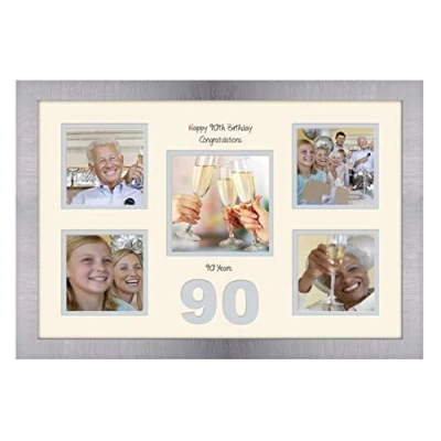 90th Birthday Photo Frame 4"x4" x4 and 5"x5" 973D (Brushed Silver Finish Cream Mount Grey Inside)