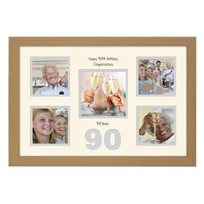 90th Birthday Photo Frame 4"x4" x4 and 5"x5" 973D (Oak Finish Cream Mount Grey Inside)