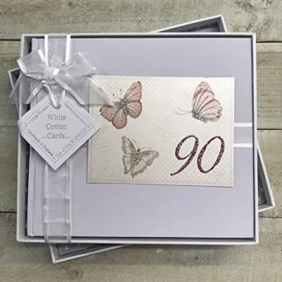 90TH Birthday. Special Occasion. Guest Book. Vintage Butterflies Design. Hand Finished by WHITE COTTON CARDS (VB90G)