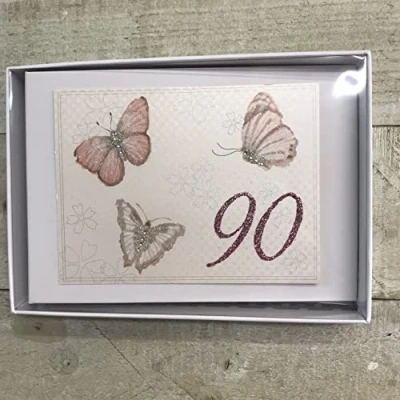 90TH Birthday. Special Occasion. Tiny Photo Album. Vintage Butterflies Design. Hand Finished by WHITE COTTON CARDS (VB90T)