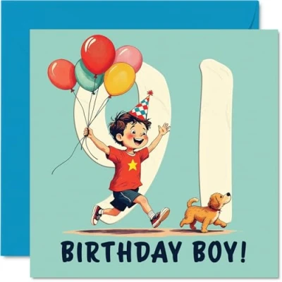 91st Birthday Cards for Men Balloon Boy Happy Card 91 Year Old Man Great Grandad Dad Grandpa Grandad, 145mm Bday Greeting