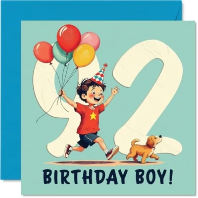 92nd Birthday Cards for Men Balloon Boy Happy Card 92 Year Old Man Dad Husband Great Grandad Grandpa, 145mm Bday Greeting