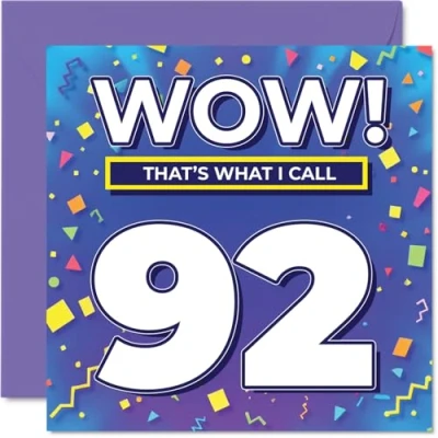 92nd Birthday Cards for Men Women WOW Thats What I Call Happy Card 92 Year Old Man Woman Wife Husband Uncle Auntie, 145mm Bday Greeting