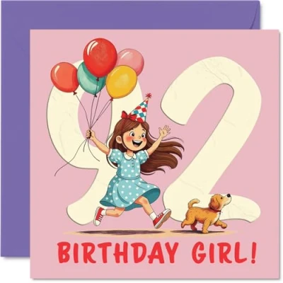 92nd Birthday Cards for Women Balloon Girl Happy Card 92 Year Old Woman Grandma Auntie Gran Wife, 145mm Bday Greeting