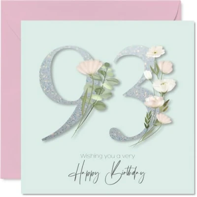 93rd Birthday Cards for Women Fancy Floral Flowers Happy Card 93 Year Old Woman Wife Nana Gran Nan, 145mm Bday Greeting