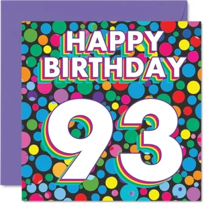 93rd Birthday Cards for Women Men Funky Rainbow Dots Happy Card 93 Year Old Woman Man Grandma Wife Husband Auntie, 145mm Bday Greeting