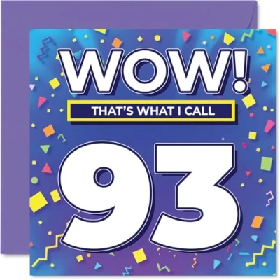93rd Birthday Cards for Women Men WOW Thats What I Call Happy Card 93 Year Old Woman Man Husband Dad Wife Uncle, 145mm Bday Greeting