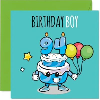 94th Birthday Cards for Men Cake Boy Balloons Happy Card 94 Year Old Man Dad Step Husband Uncle, 145mm Bday Greeting