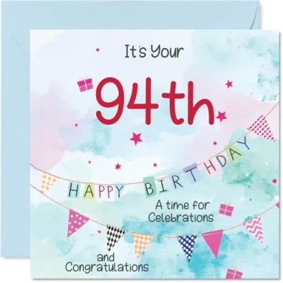94th Birthday Cards for Men Party Bunting Happy Card 94 Year Old Man Step Dad Uncle in Law Husband Dad, 145mm Bday Greeting
