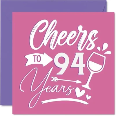 94th Birthday Cards for Women Cheers Happy Card 94 Year Old Woman Nana Nanny Auntie Grandma, 145mm Bday Greeting