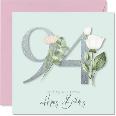 94th Birthday Cards for Women Fancy Floral Flowers Happy Card 94 Year Old Woman Nana Auntie Wife Gran, 145mm Bday Greeting