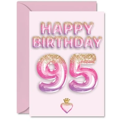 95th Birthday Cards for Men Women Pink & Purple Glitter Balloons Happy Card 95 Year Old Man Woman Grandma Nan Dad Husband, A5 Bday Greeting