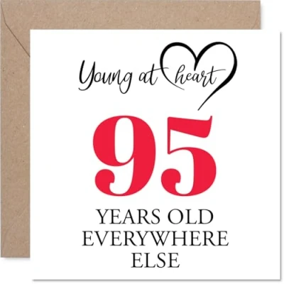 95th Birthday Cards for Men Women Young at Heart Happy Card 95 Year Old Man Woman Wife Nan Uncle Grandad, 145mm Bday Greeting