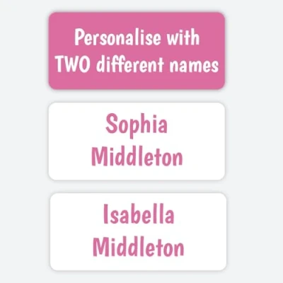 ⭐2 Names on One Sheet - 96 labels in total, 48 labels per child Perfect for siblings or twins — personalise labels with 2 children’s names and save money. Labels measure 30mm x 13mm. ⭐Use on Uniforms, Bottles, Shoes & Books Stick onto care labels or hard surfaces. Ideal for school, nursery and daycare. ⭐Washproof & Dishwasher-Safe Tested to last washing machine cycles at 40°C and 100+ dishwasher cycles. Safe for washing machines, tumble dryers, dishwashers, microwaves, and freezers. ⭐Peel & Stick in Seconds, No sewing or ironing needed Applies easily by hand — bonds in 24 hours. Full instructions included. ⭐Quality Labels with Friendly Support Designed, printed and packed in the UK. Thousands of families trust us every year (since 2004).