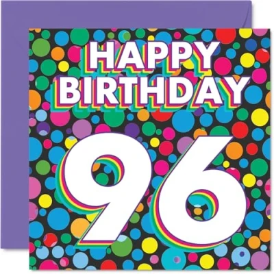 96th Birthday Cards for Men Women Funky Rainbow Dots Happy Card 96 Year Old Man Woman Grandad Dad Uncle Wife, 145mm Bday Greeting