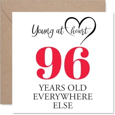96th Birthday Cards for Women Men Young at Heart Happy Card 96 Year Old Woman Man Nan Auntie Wife Uncle, 145mm Bday Greeting
