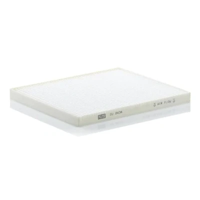 MANN-FILTER Cabin Air Filter CU 2434 / Dimensions (mm): A = 240; B = 211; H = 17 / Premium Filter in Original Equipment Quality High-quality MANN-FILTER cabin filters offer almost 100% protection against particles such as pollen, diesel soot and tyre abrasion - for a feel-good climate in the vehicle interior and protection of the air conditioning system Exact fit and perfect tightness ensure constant filtration performance during the entire service interval / Optimum vehicle interior ventilation due to the high air flow capacity Looking to find the correct filter? Select: brand, model, vehicle type, and engine type above to see which one fits your vehicle MANN+HUMMEL complies with REACH-regulation + supports the goal of Improved health and safety through the design, manufacturing, usage, disposal and recycling of our products