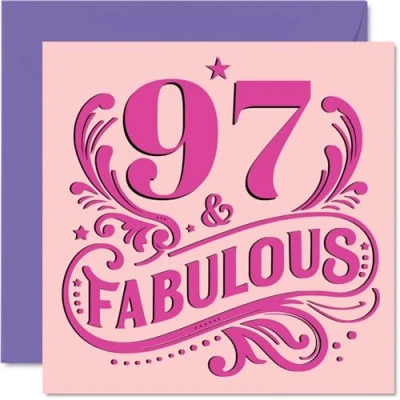 97th Birthday Cards for Women Fabulous Happy Card 97 Year Old Woman Nan Wife Nana Nanny, 145mm Bday Greeting