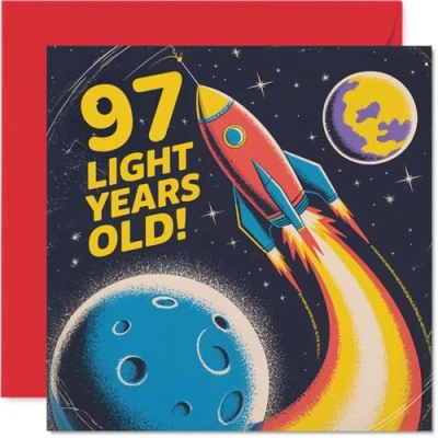 97th Birthday Cards for Women Men Light Years Old Happy Card 97 Year Woman Man Grandad Auntie Nan Nanny, 145mm Bday Greeting