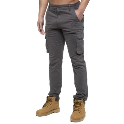 989Zé ENZO Mens Cargo Combat Pants Straight Leg Regular Fit Chino Trousers EZ425 Grey 34W / 32L