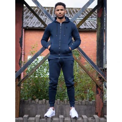 989Zé ENZO Mens Full TRACKSUIT Set Long Sleeve Zip Up Hoodie Jacket Sweatshirt and Casual Fleece Sweatpants Joggers HD577 + JG579 NAVY S