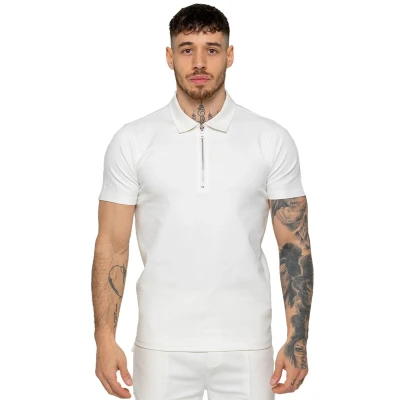 989Zé ENZO Mens Polo Shirt Regular Fit Summer Tee Zip Collar Short Sleeve Casual T EZPL617 Off White XL