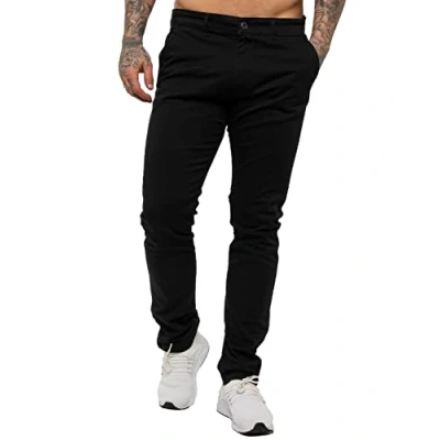 989Zé ENZO Mens Skinny Slim Fit Chinos Stretch Trousers Pants EZ348 Black 44 Regular