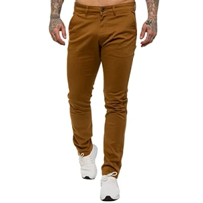 989Zé ENZO Mens Skinny Slim Fit Chinos Stretch Trousers Pants EZ348 TAN 40 Regular
