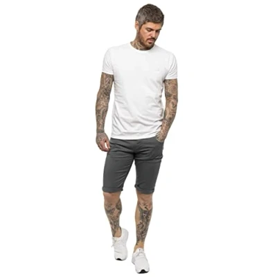 989Zé ENZO Mens Slim Fit Shorts Stretch Cotton Chino Casual Summer Smart Half Pants with Pockets EZS348 Grey 44