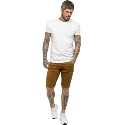 989Zé ENZO Mens Slim Fit Shorts Stretch Cotton Chino Casual Summer Smart Half Pants with Pockets EZS348 TAN 30