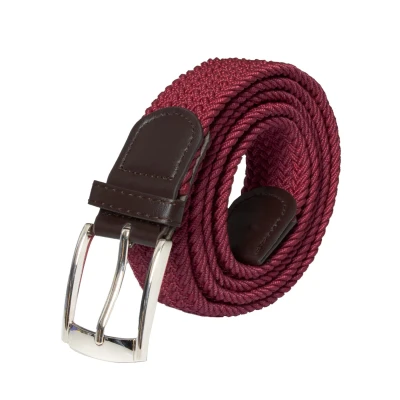 989Zé ENZO Mens Stretch Belts Ladies Elasticated Woven Adjustable Braided Metal Buckle Belt (Burgundy, S/M)