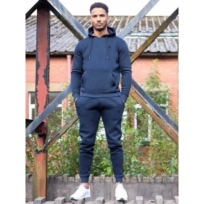 989Zé ENZO Mens TRACKSUIT Long Sleeve Pullover Overhead Hoodie and Casual Cotton Fleece Joggers Pants Set HD578 + JG579 NAVY M