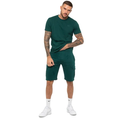 989Zé ENZO Mens Tracksuit T Shirt Shorts Set Regular Fit Plain Tee Crew Neck Top Casual Fleece Cargo EZTS603 & EZSC602 GREEN L