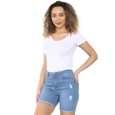 989Zé ENZO Womens Denim Shorts Skinny Stretch Casual Ladies Ripped Turned Up Hem Short Hot Pants with Pockets EZLS417 LSW 8 Light Blue
