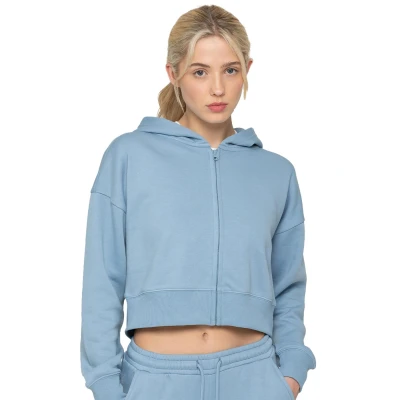 989Zé ENZO Womens Hoodie Top Casual Fleece Cropped Sweatshirt With Hood Crop Hoody (UK, Alpha, XL, Regular, Blue Zip)
