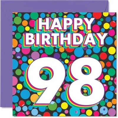 98th Birthday Cards for Men Women Funky Rainbow Dots Happy Card 98 Year Old Man Woman Nanny Nan Dad Grandad, 145mm Bday Greeting